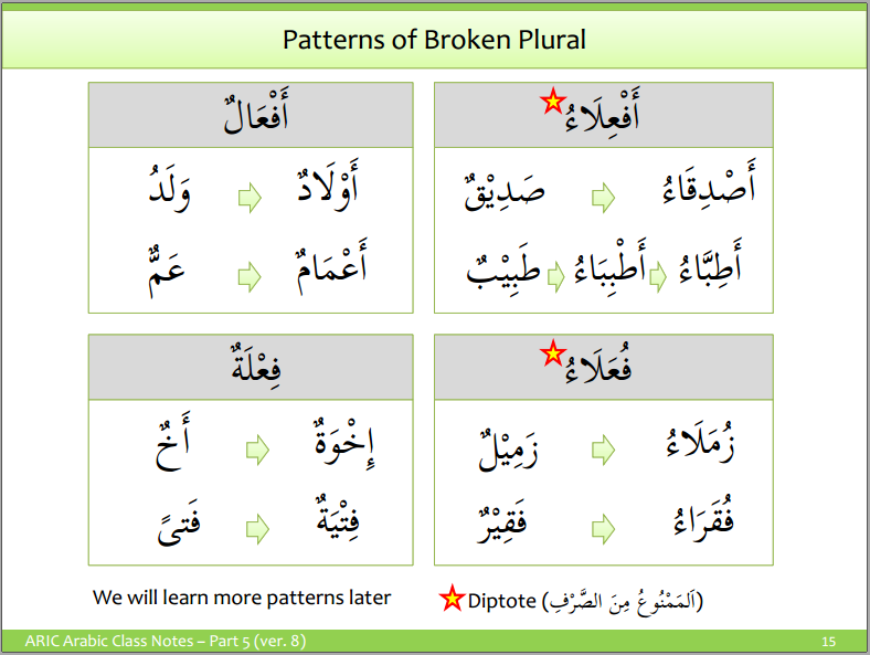 (عَــيْــنٌ,اَعْــيُــنٌ, eyes), (مَــلَــكٌ, مَلٰٓئِكَةٌ,angels).