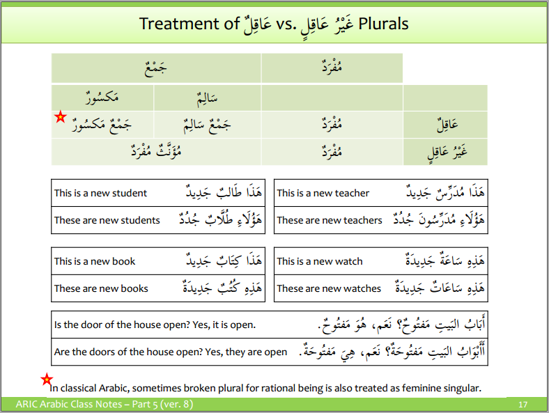 | Introduction to Arabic Plurals (Seq # 41) | T, T, F |