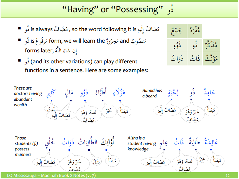 Source for above: Dr. V. AbdurRahim’s Madina Book 2 – English Key – Lesson 01