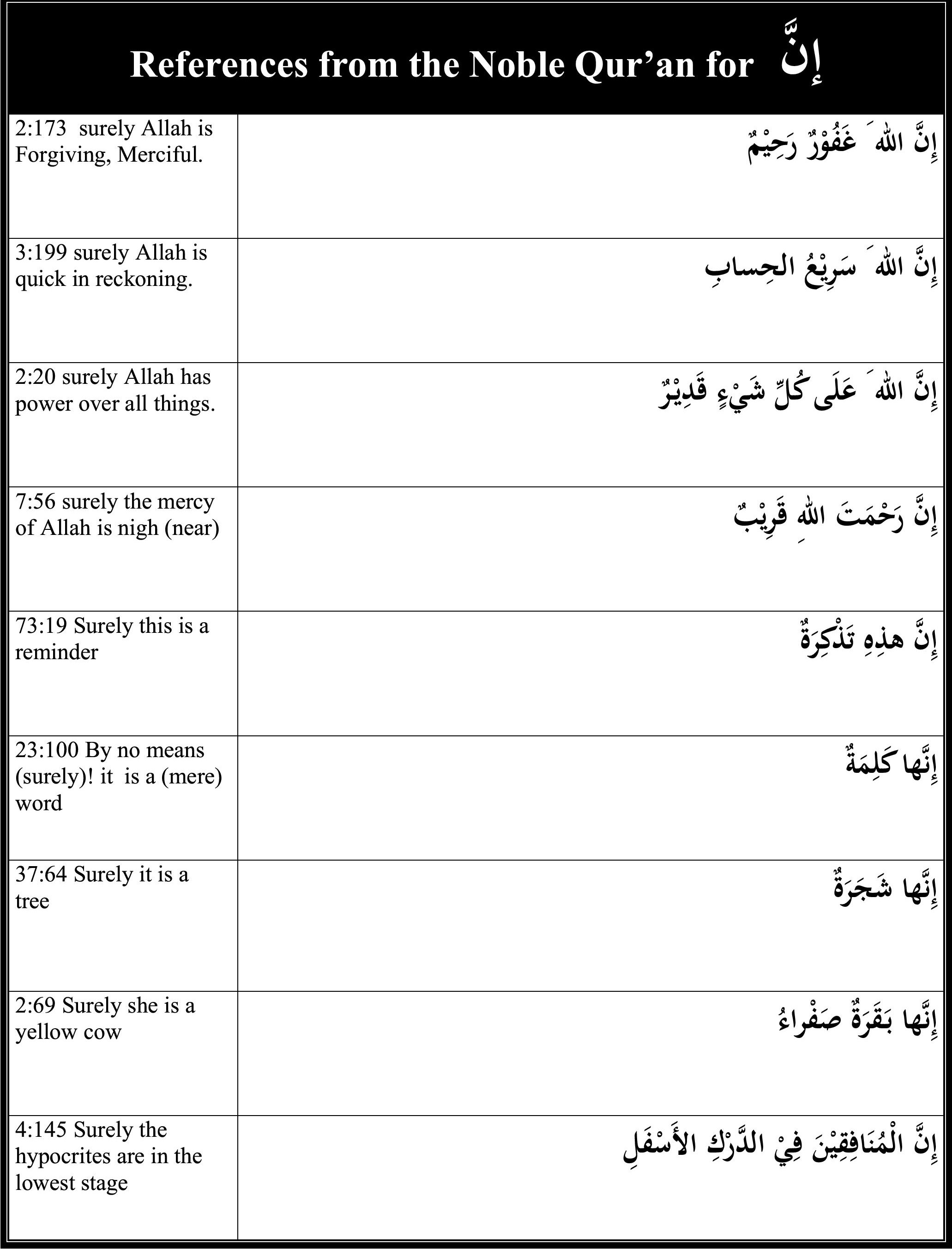 | إنَّ when joins with 14 pronouns (Seq # 65) | T, T, T |