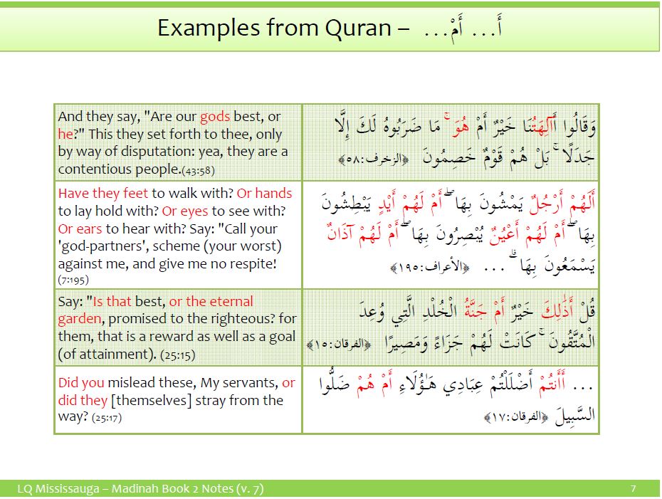 Source for above: Dr. V. AbdurRahim’s Madina Book 2 – English Key – Lesson 01
